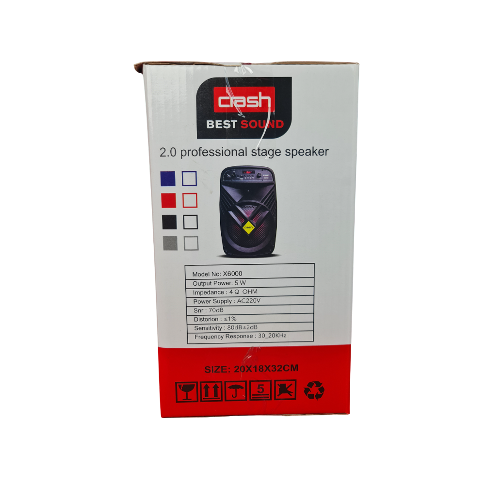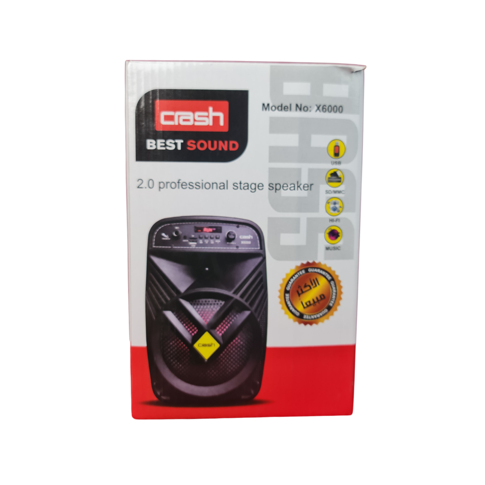 سماعة Carsh BEST SOUND Professional Stega Speaker X6000 بصوت قوي ونقي، تصميم إحترافي، توافق مع جميع الأجهزة، مثالية للمنازل والحفلات والإستخدام اليومي.
