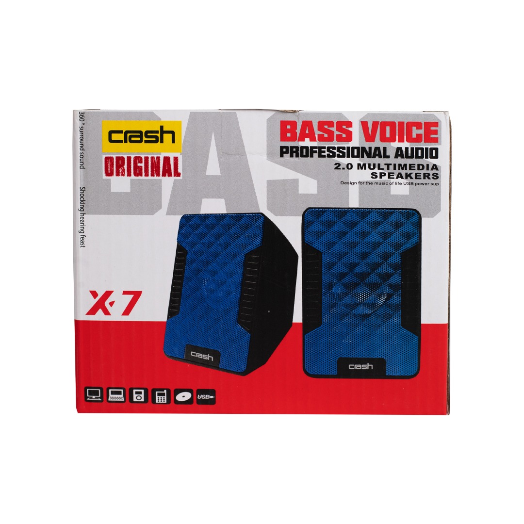 تمنحك سماعة Crash USB X7 صوتًا واضحًا وقويًا مع إخراج يصل إلى 10 واط، ما يجعلها رائعة للاستماع إلى الموسيقى ومشاهدة الفيديوهات بجودة عالية مع تأثير صوت محيطي ممتع.