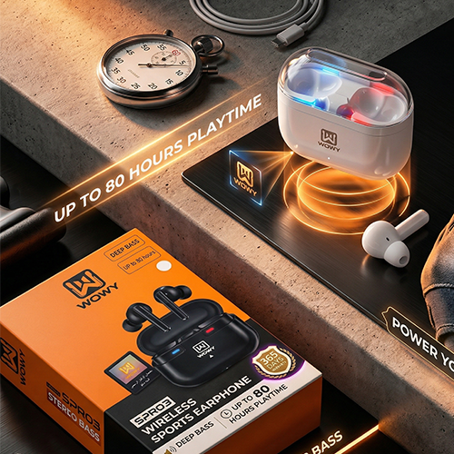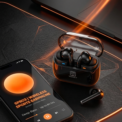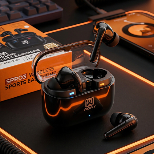 إستمتع بتجربة صوت إستثنائية مع wowy spro3 wireless earbuds لمصممة لمحبين الأداء العالي والراحة اليومية.